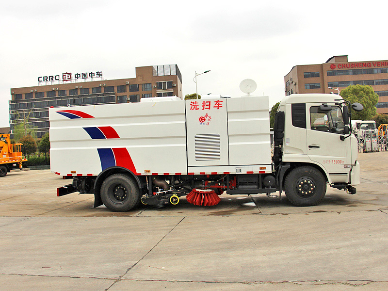 低压冲洗:利用离心水泵的低压力、大流量对路面进行冲洗作业,作洒水车用。