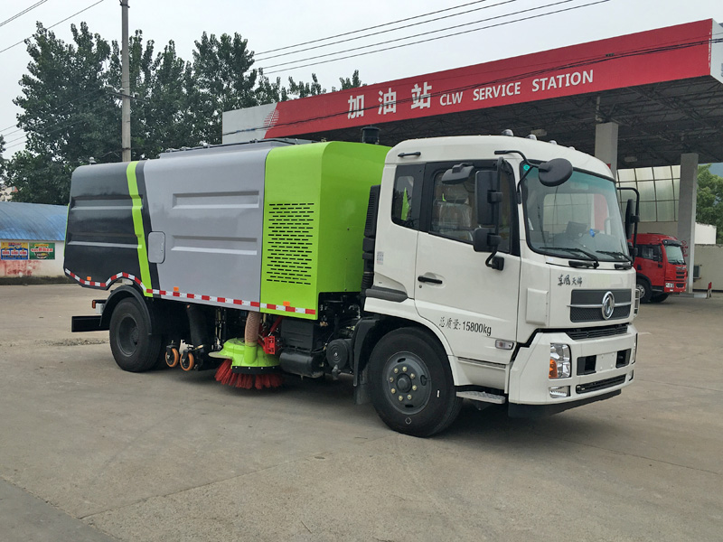 2)采用“中置两立扫+真空吸尘罩+中置宽吸嘴+左右四吸尘管”的布置方式。大扫刷设计,可清除道路台阶死角垃圾,吸嘴能随地面状况自动找平,清扫能力大,清扫速度快。