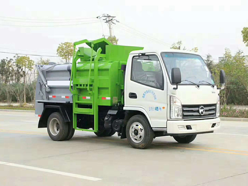 作系统,工作人员操作方便,罐体举升自卸,拉杆式挂桶提升机,可以挂120/240升垃圾桶进行作业,后盖液压驱动开启、锁紧,方便人员操作。