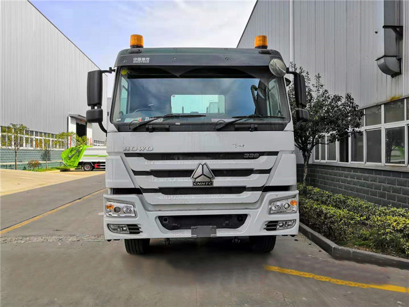 HW76新前脸驾驶室;D10.34-50发动机;HW19710变速器+HW70法兰式取力器;HR9前轴(盘);HC16自调臂双后桥(鼓);双层车架(8+8/300);ZF8118方向机;前后加强版多片簧(10/12);低位保险杠(非金属);带ABS(4S/4M);标准版排气系统;无气候包。12.00R20钢丝胎;速比4.8;400L油箱;整车前下防护;16T18D型上装,六边形二节式吊臂,三节式托臂,分体式车厢,双侧联动式操作装置,后工作灯3只,2个10吨液压绞盘(40米钢丝绳),拖叉5对,拖车座1对,**制动气管总成1套,带LED长排**示灯,加装前配重。
